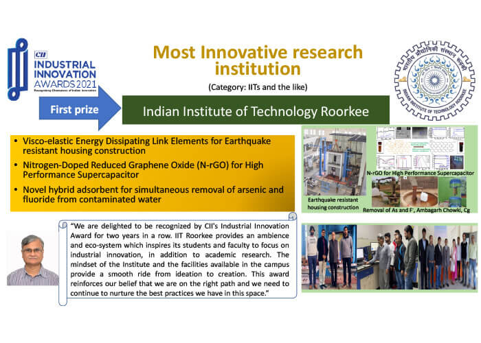 Most Innovative Research Institutions category (IITs and the likes) Winner: IIT Roorkee