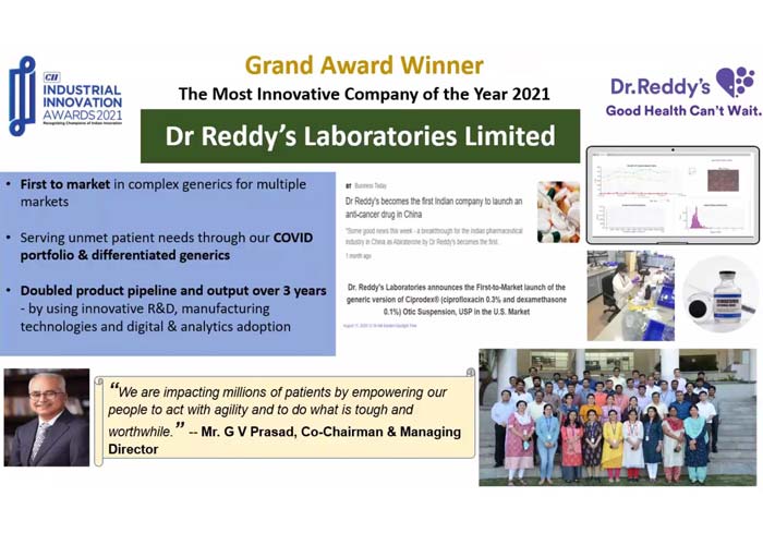 Grand Award of CII Industrial Innovation Awards (The Most Innovative Company 2021)Dr Reddy's Laboratories Ltd.