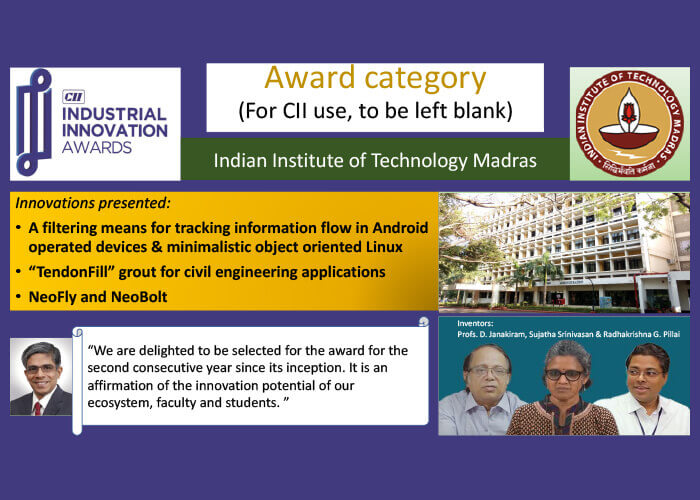 Most Innovative Research Institutions category (IITs and the likes) 1st runner up: IIT Madras