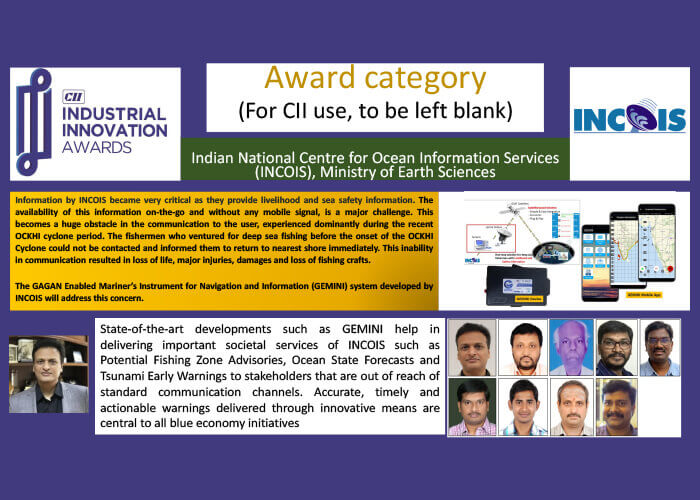 Most Innovative Research Institutions category (IITs and the likes) 2nd runner up: INCOIS