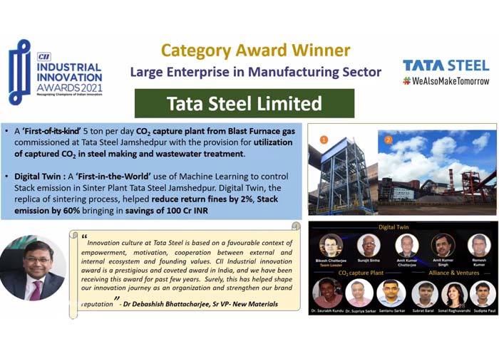 Top Innovative Company (Large enterprises) in Manufacturing (Joint Winner)Tata Steel (Joint Winner)