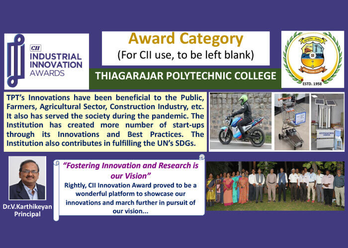 Thiagarajar Polytechnic Collegewins the award in Polytechnic category